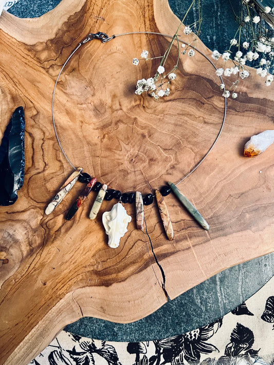 Dire Wolf Necklace with Red Jasper & Obsidian