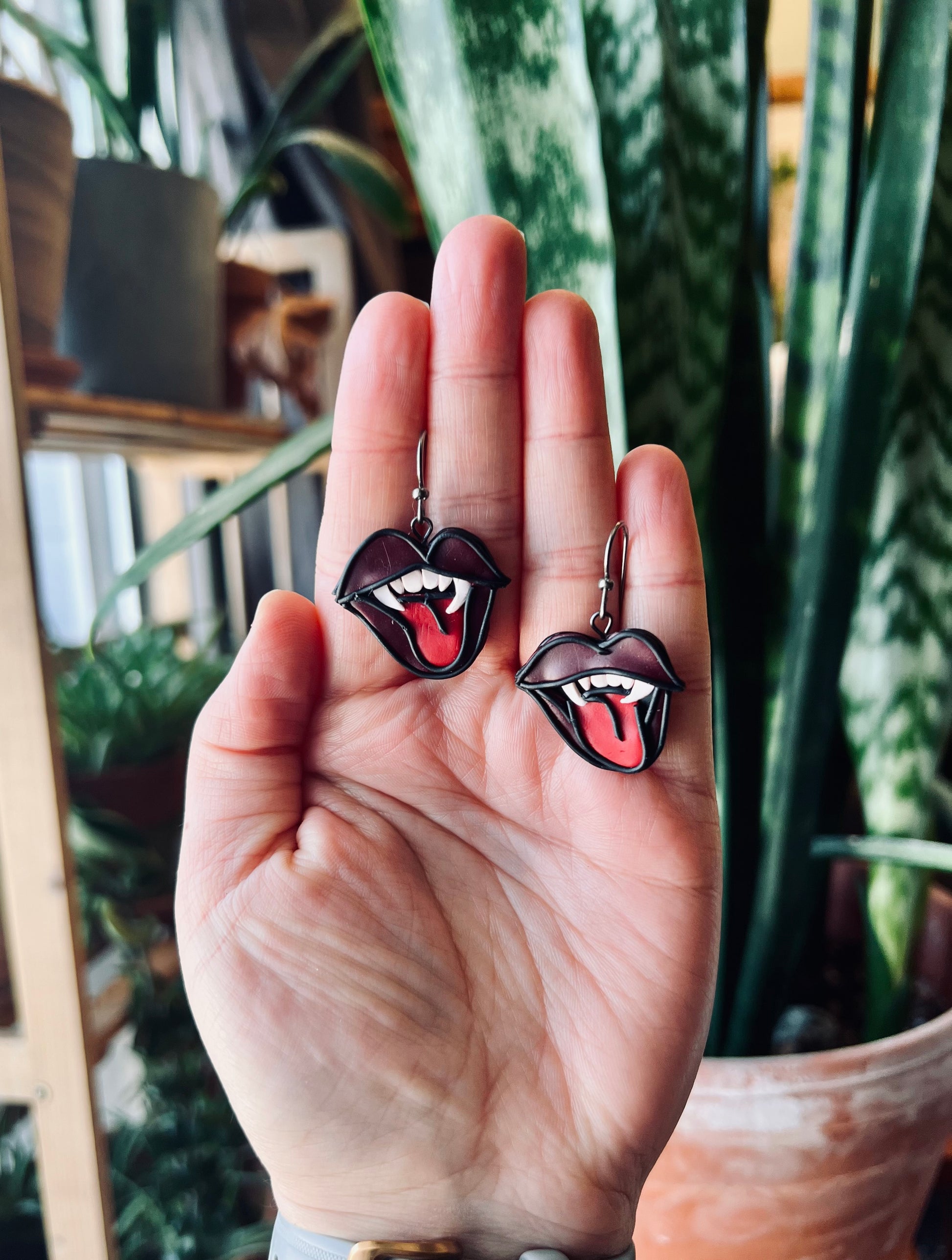 Sink your style into the dark allure of these crimson vampire earrings, a nod to the eternal dance between seduction and immortality. Embrace the symbolism of transformation, temptation, and the eternal thirst for life's mysteries.