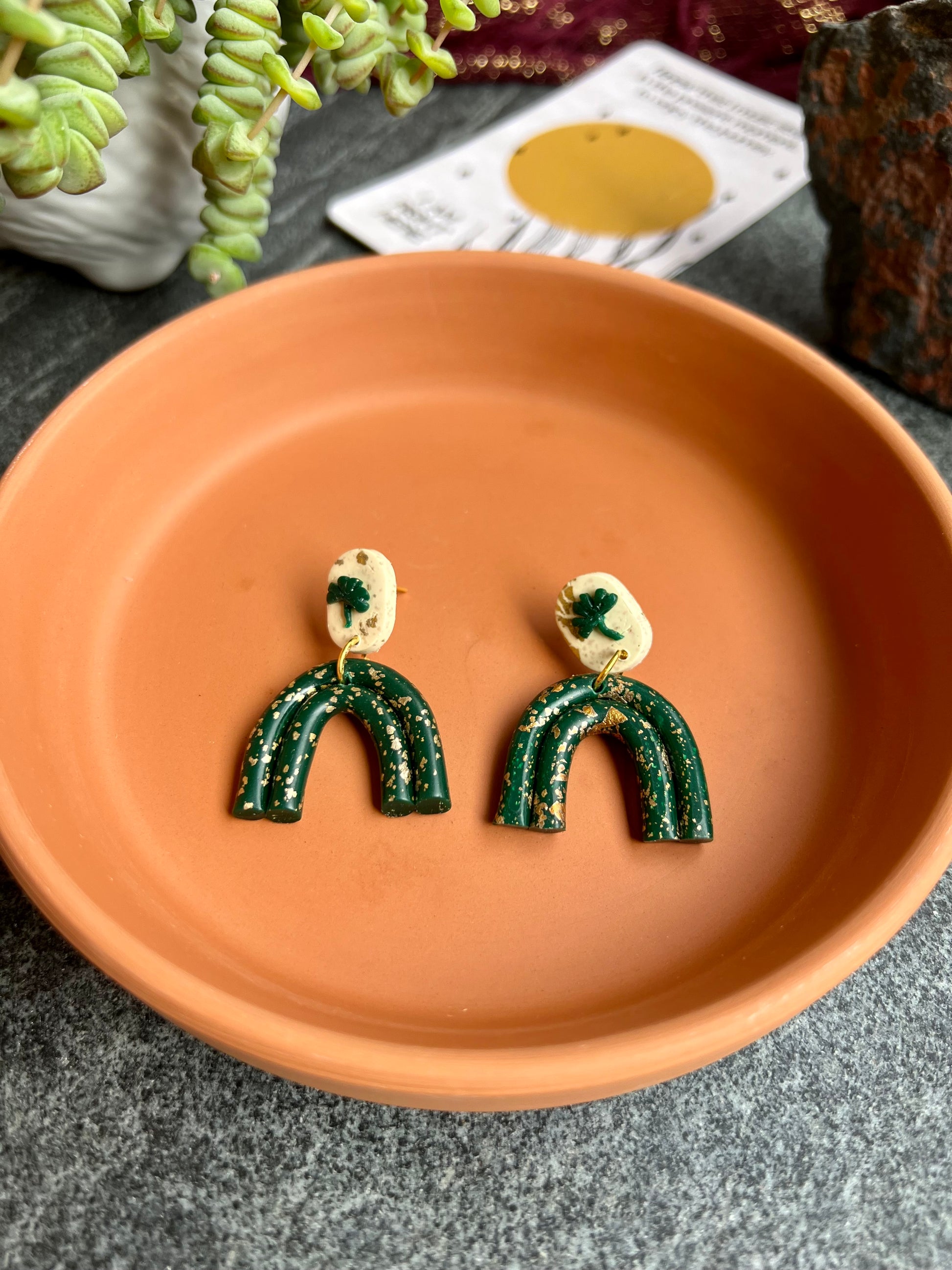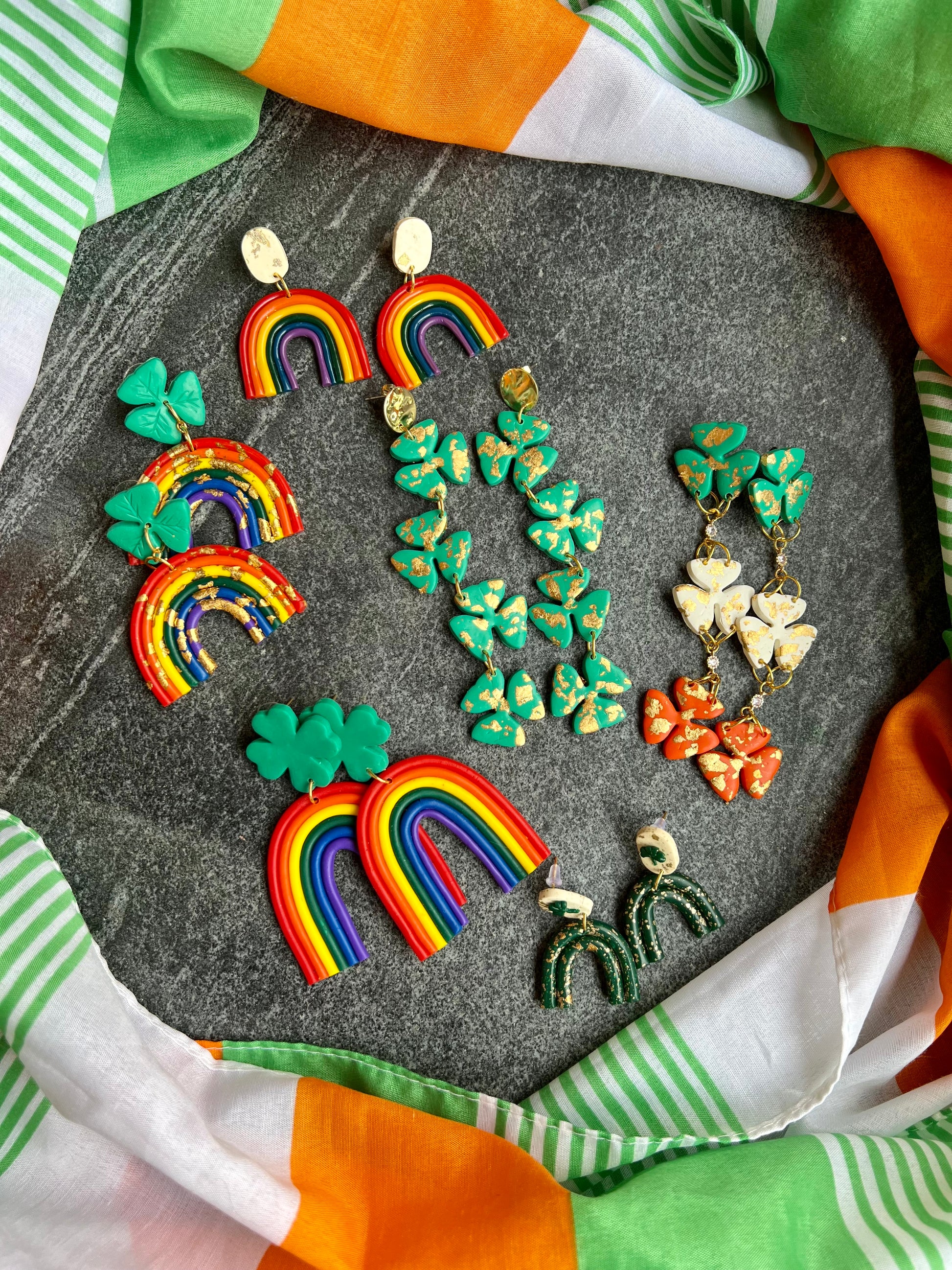 Mini green rainbow. Hand sculpted clover, and gold leaf.