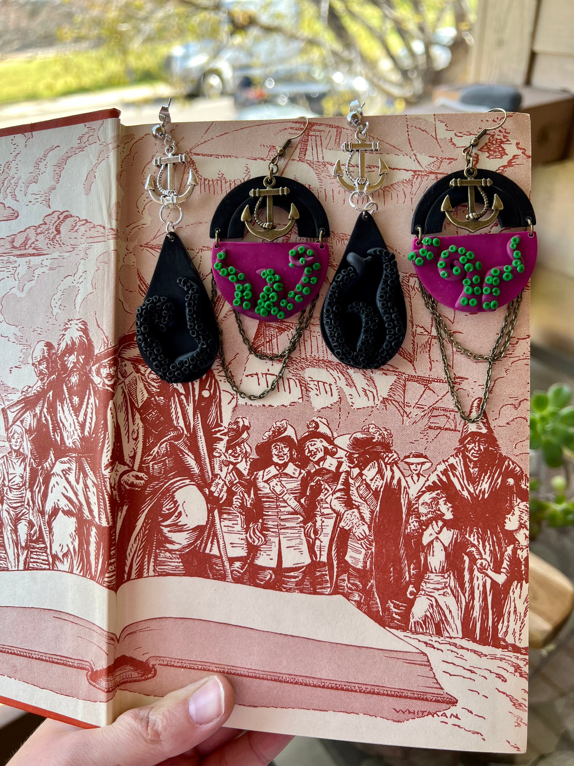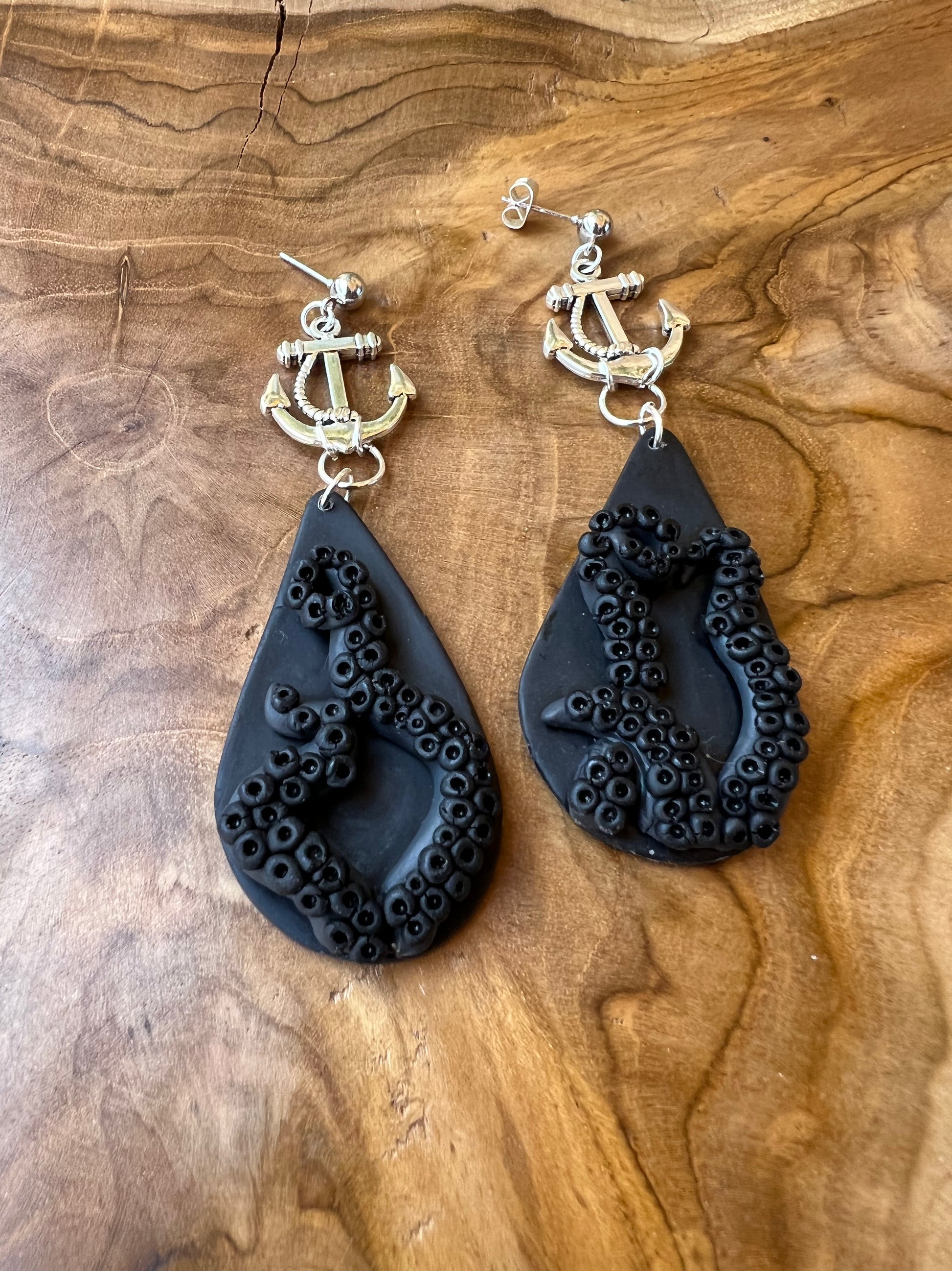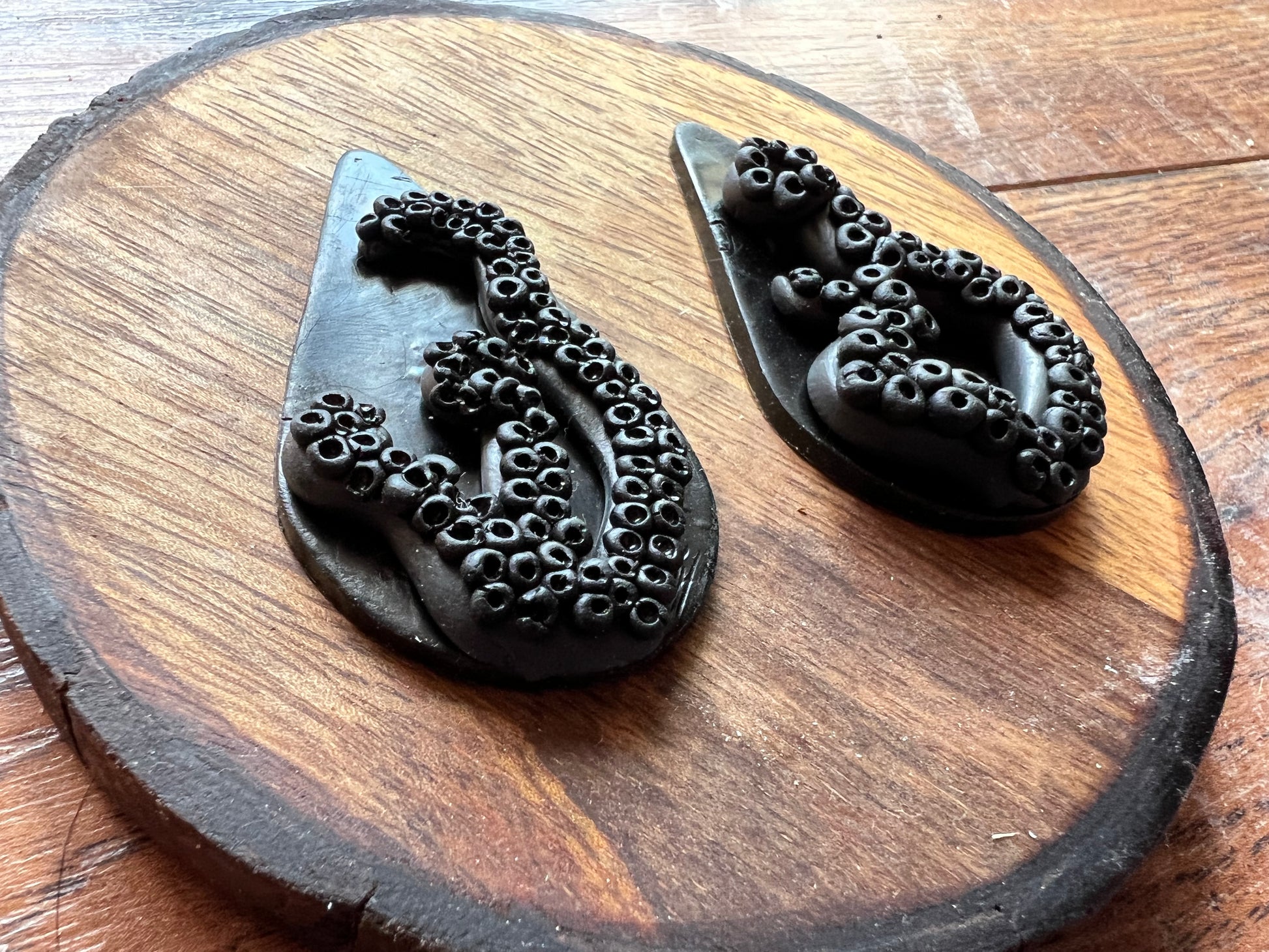 These polymer clay earrings are handcrafted. Each tentacle was hand sculpted with love. The earring posts are hypoallergenic and nickel free!