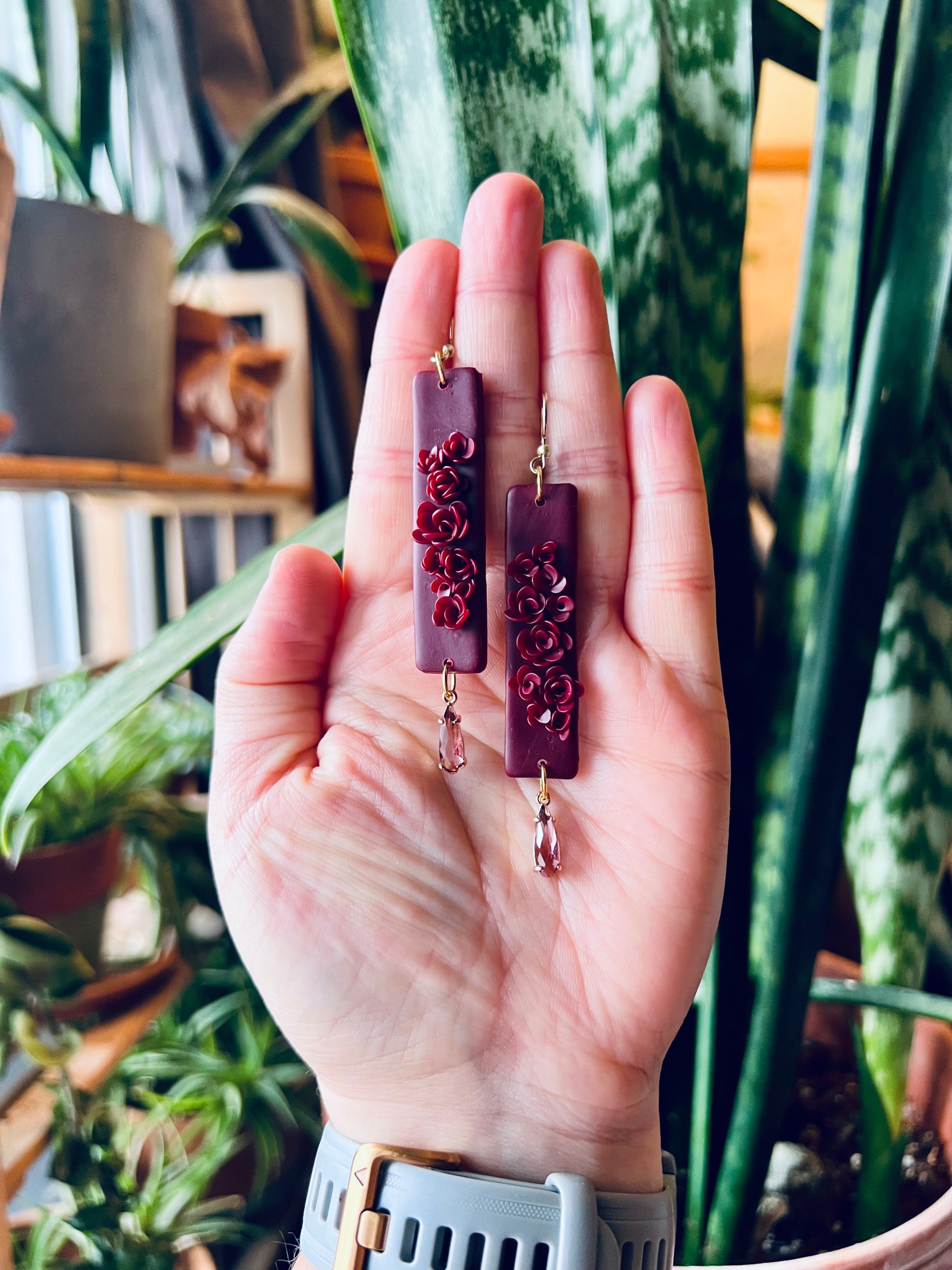 These earrings are made out of polymer clay, and each flower is delicately hand crafted. The findings of these earrings are hypoallergenic (14k gold filled).