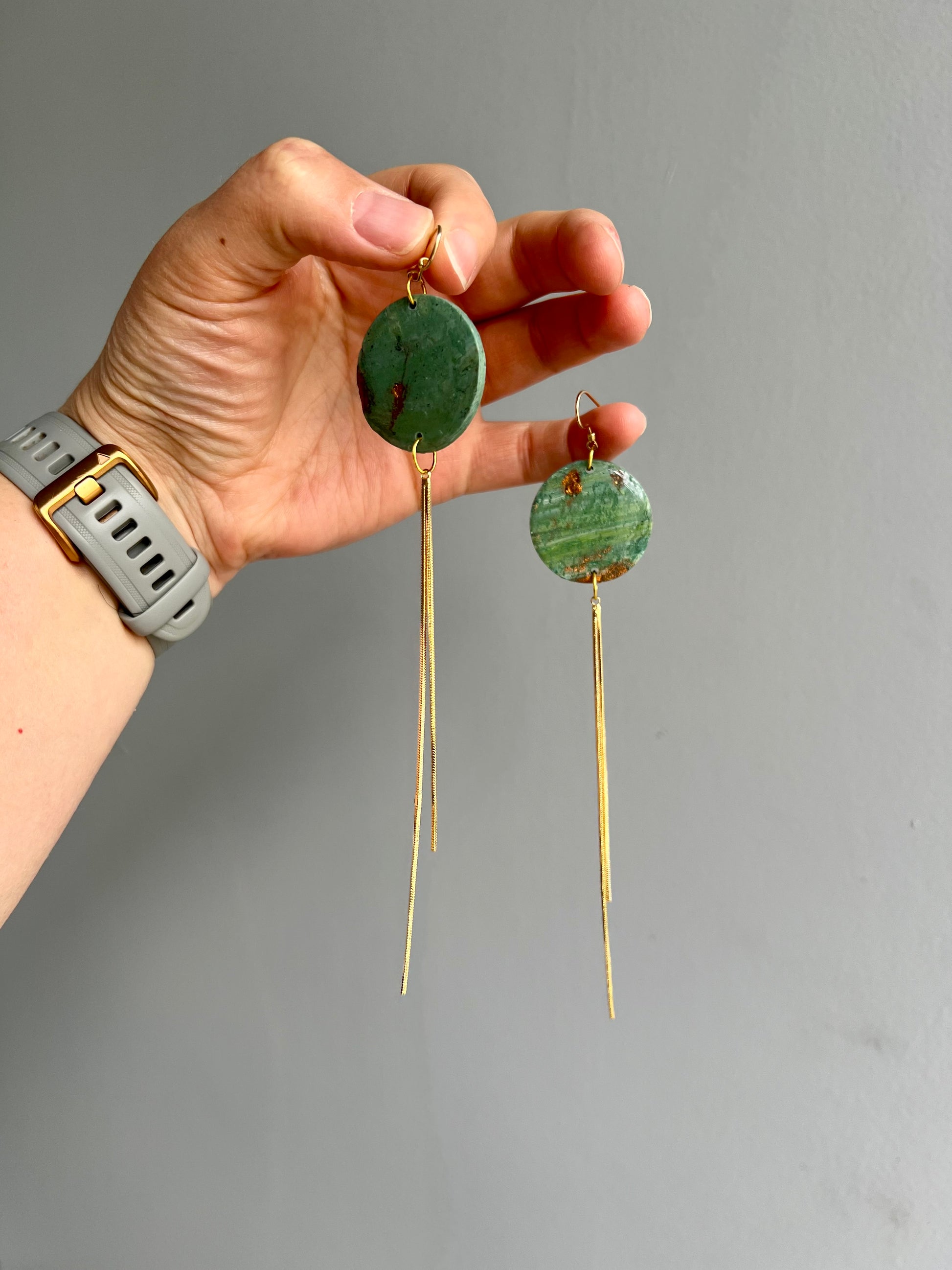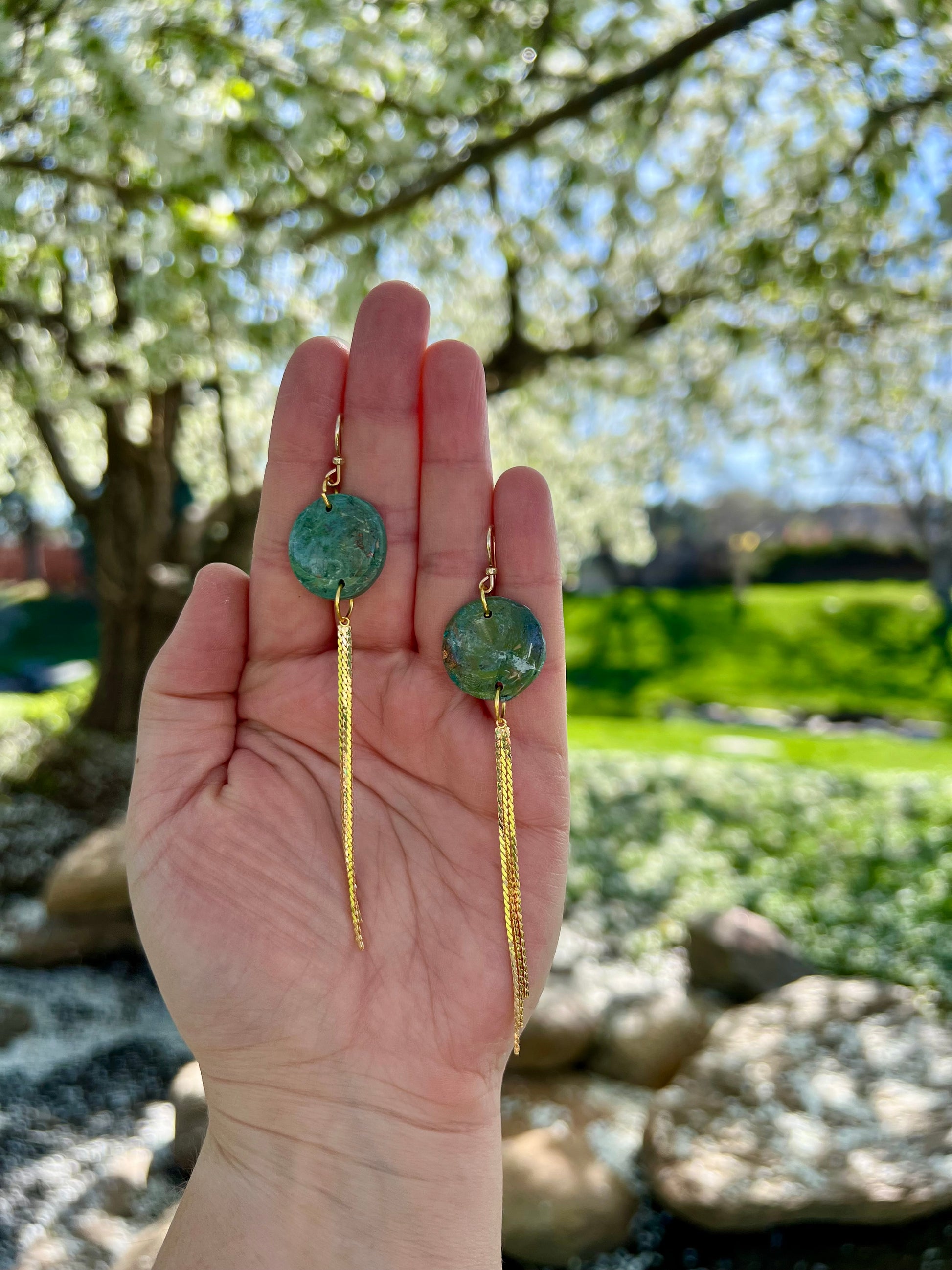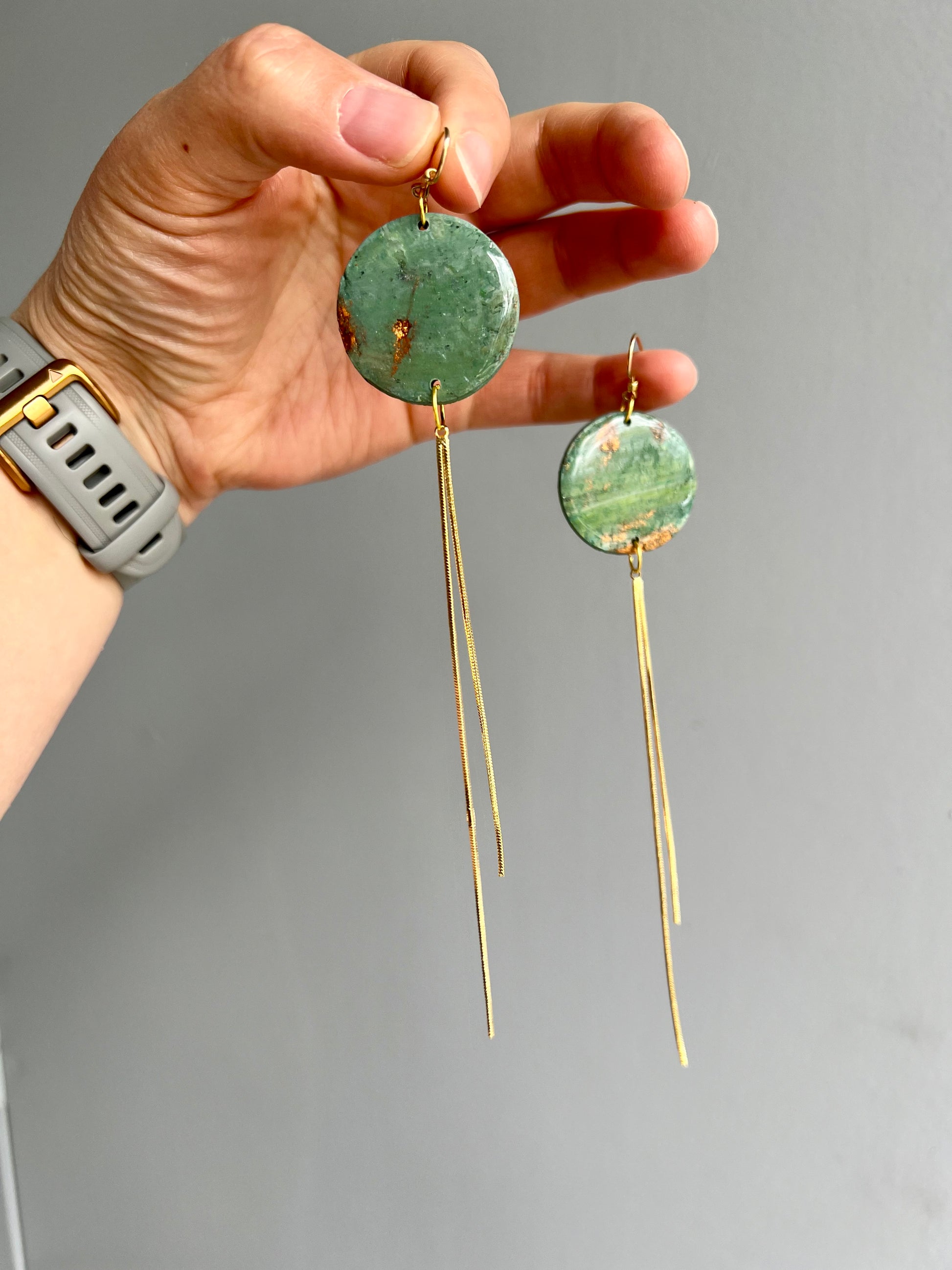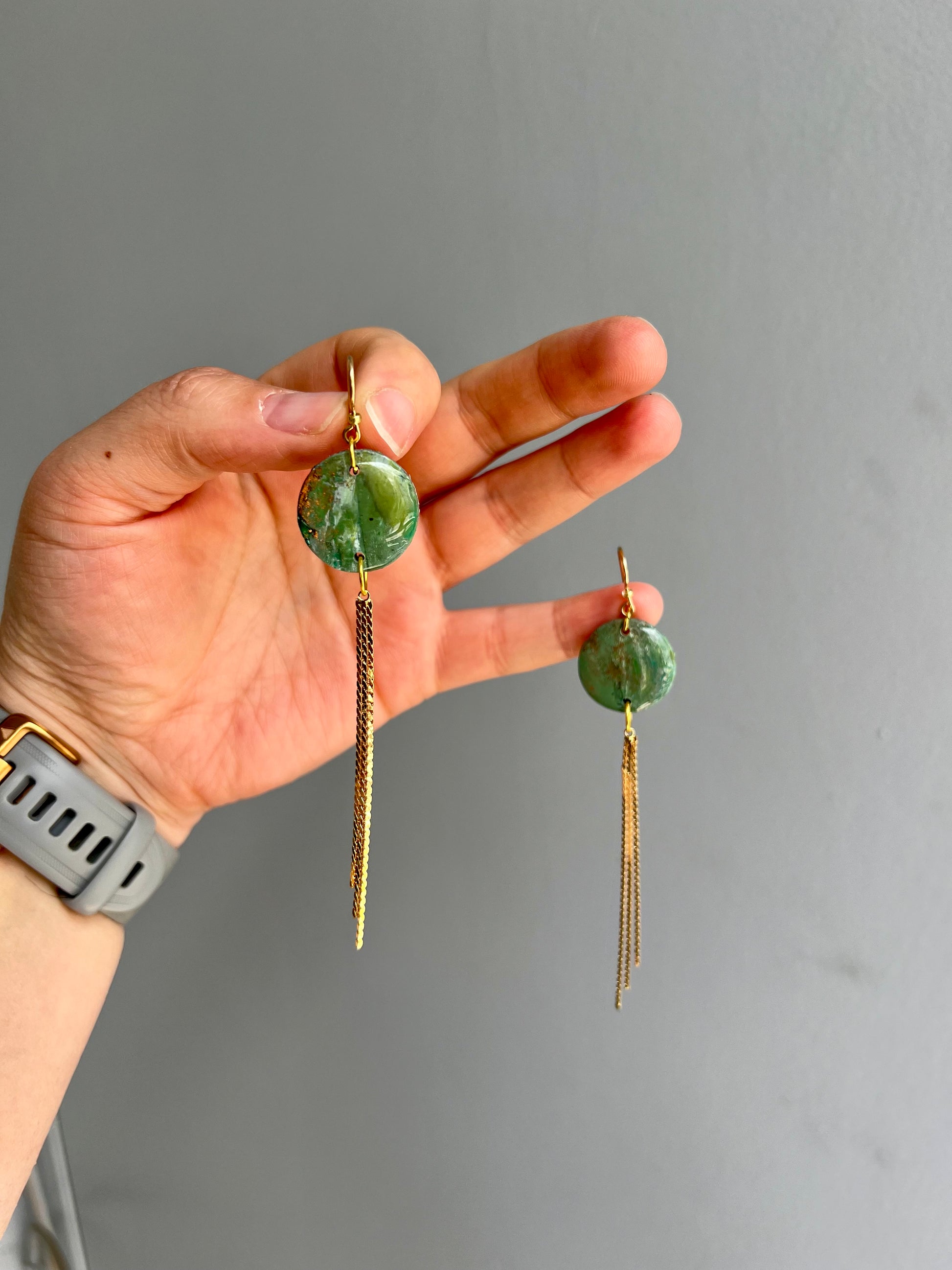 Introducing our faux Connemara Earrings, where the timeless allure of Connemara marble meets contemporary elegance. Crafted with meticulous attention to detail, these earrings feature faux Connemara marble effect that exude the same captivating beauty as the renowned Irish gemstone. With their exquisite green hues reminiscent of the lush landscapes of Ireland, these earrings are a tribute to the Emerald Isle's natural splendor.