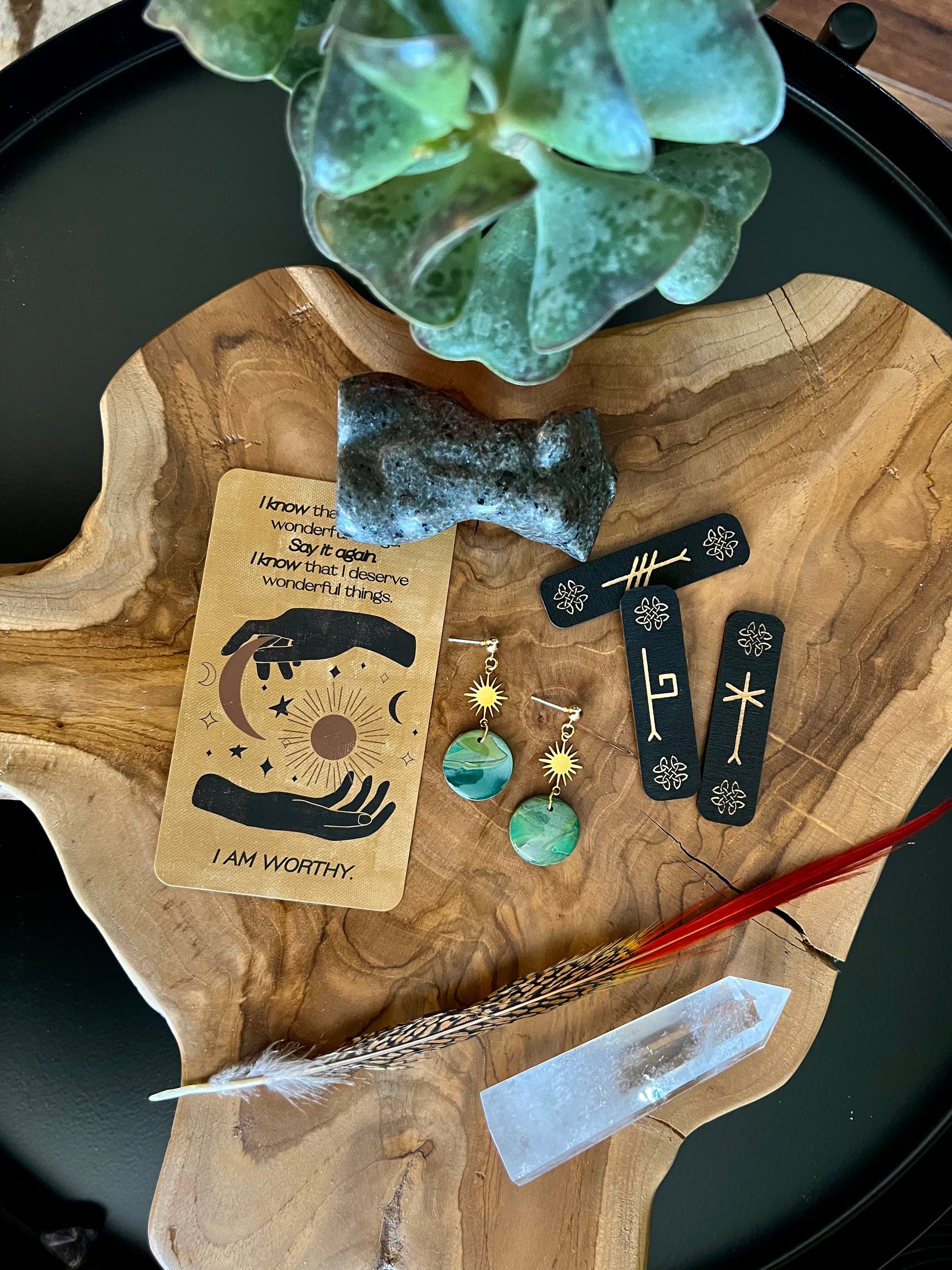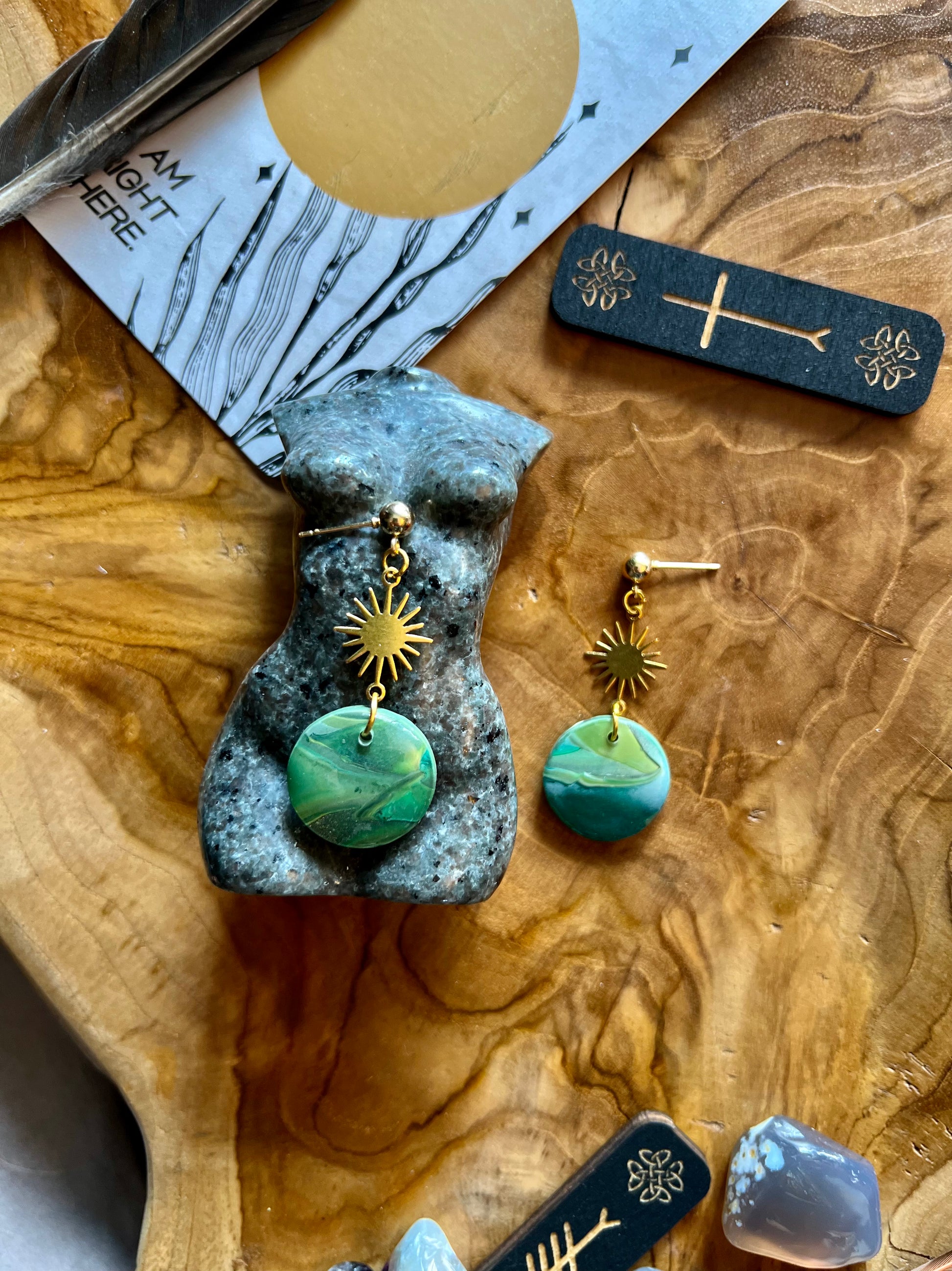 The color green represents rebirth, renewal, and immortality. These earrings bring the wearer the energy of the earth, in order to grow and bring balance.