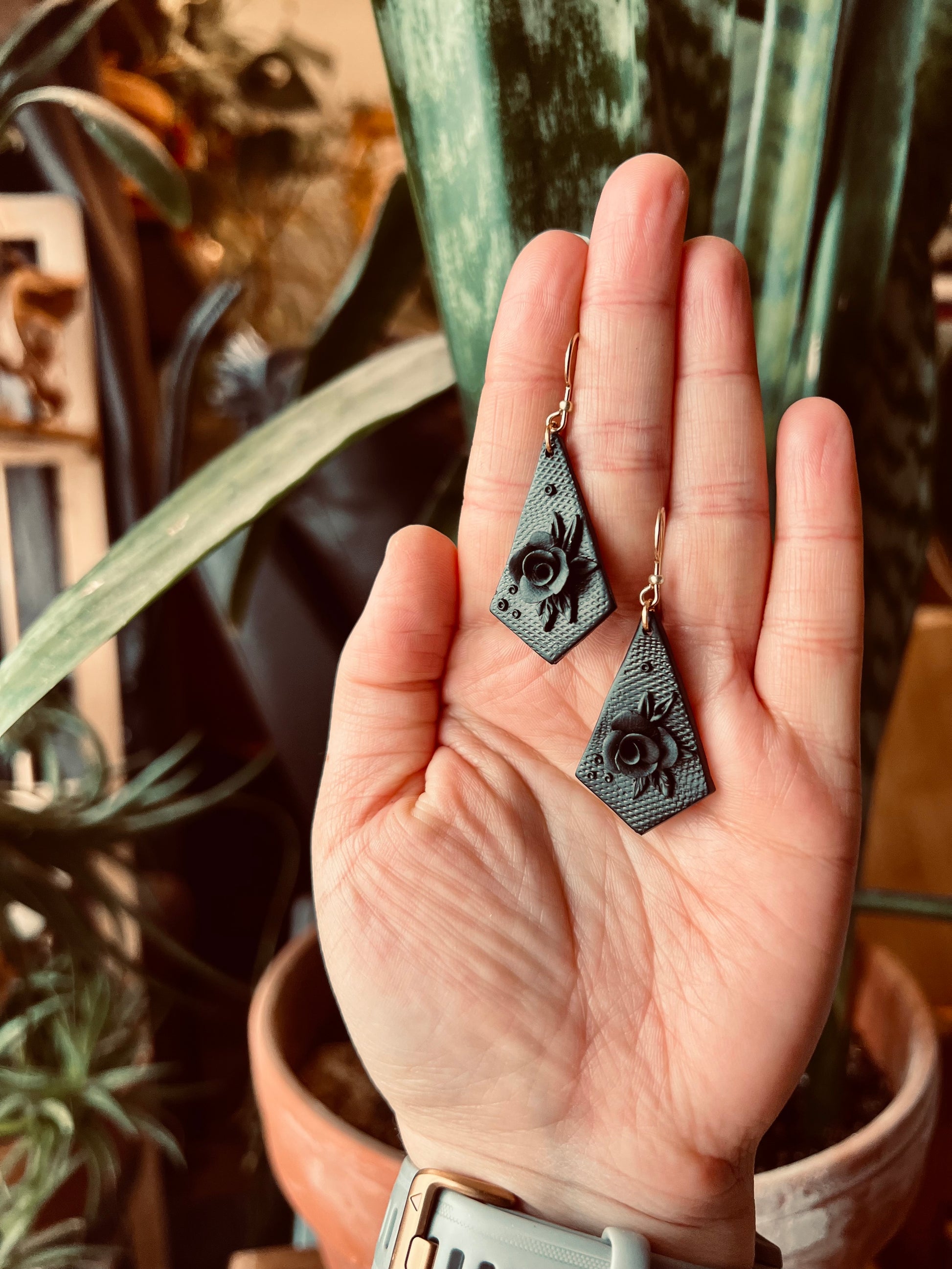 Embrace the darkness and mystery with our Nyx-inspired earrings. Set against a backdrop of midnight black, a solitary rose blooms, embodying the essence of the primordial goddess of the night. Wear these earrings as a tribute to Nyx's timeless beauty and the depth of the unknown.