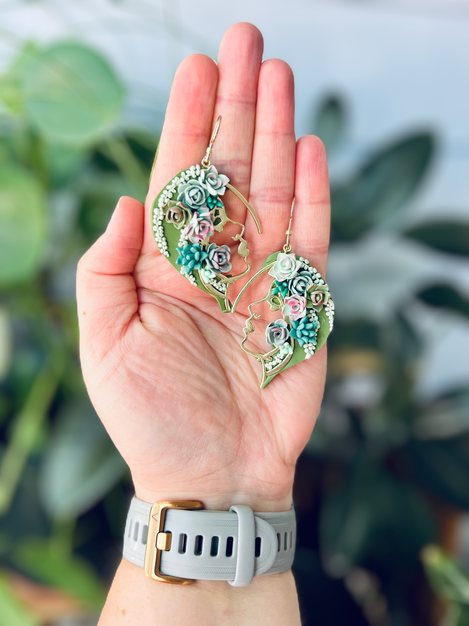 Introducing our Persistence Goddess Succulent Earrings, meticulously handcrafted from high-quality polymer clay. These stunning earrings feature a unique design that seamlessly blends the elegance of a woman's silhouette with the natural beauty of succulents. Each pair is a wearable work of art, perfect for adding a touch of nature-inspired charm to any outfit. Lightweight and durable, they are ideal for both everyday wear and special occasions. Elevate your style with these one-of-a-kind earrings that celebrate the harmony between femininity and the strength and endurance of succulents!